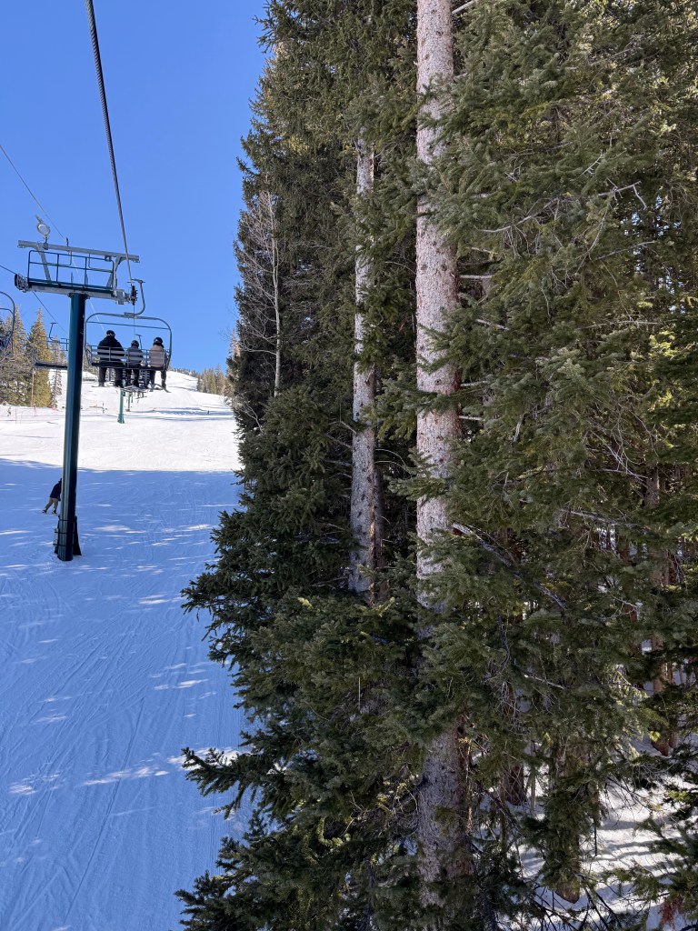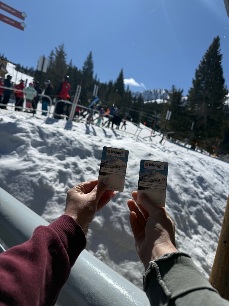 Given that Brighton Resort requires advanced booking for specific dates, our first adventure was driving the 50 minutes from PC, through the incredible Wasatch National Forest, gaining over 1700 ft in base elevation. It was one of those drives that you really had to get out and look around. With a high of 61° that day, I opted for light weight base layers with a shell bib and jacket. With easy mid week parking, we quickly scanned the QR code at a self-serve kiosk and instantly received our printed lift tickets. Zero lines, zero hassle. There were even complimentary sunscreen pumps around the resort.