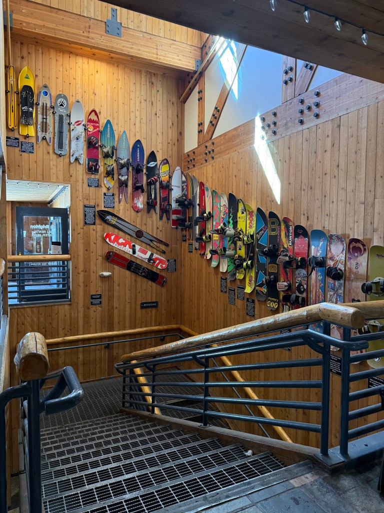 Despite the warm weather, there was still a solid base of snow. The runs were wide, open, and forgiving. Perfect for snowboarders. Trees lined nearly every trail, creating this playful, immersive feel that made the whole mountain feel like a terrain park.