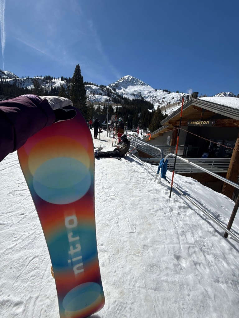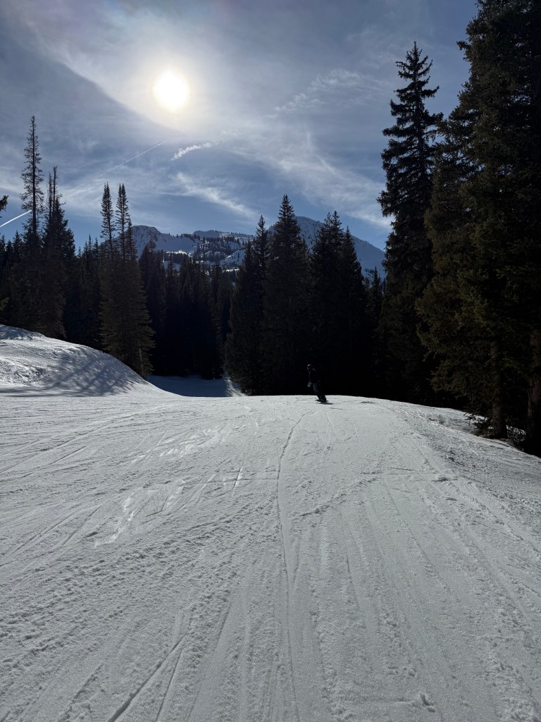 At higher elevations, we still found pockets of powder. We spent the day lift hopping, chasing views, and taking it all in. At one point, we grabbed sushi from the cafeteria and sat in the sun, just soaking it up. Brighton left an impression. It is the kind of place you know you will come back to.